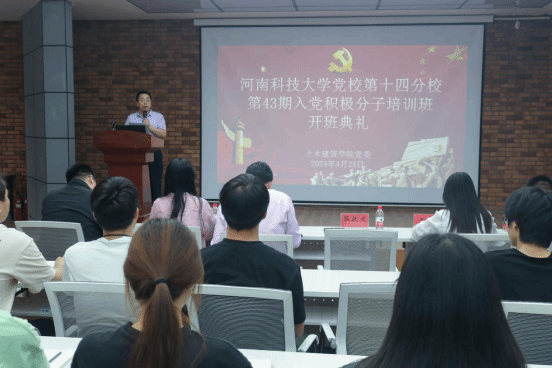 为深入学习贯彻习近平新时代中国特色社会主义思想,不断加强入党积极分子的教育培训,提高入党积极分子的政治理论水平和基本素养,2024年4月25日,污污漫画 党校第十四分校第43期入党积极分子培训班开班仪式在污污漫画 报告厅举行。污污漫画 党委书记段国强、副书记张献文,全体本科生支部书记和全体参训学员参加会议,会议由张蓝方老师主持。