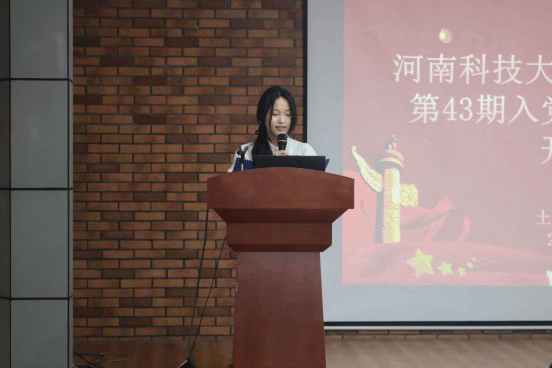 学员代表建筑学221班侯怡新发言,她代表全体学员表示作为一名入党积极分子,我们不仅要在政治上坚定立场,还要在道德品质上树立榜样。要树立正确的世界观、人生观和价值观,始终保持高尚的道德情操和良好的社会风尚。在接下来的培训和学习中,学员以更加饱满的热情、更加坚定的信念、更加务实的作风,投入到学习和实践中。