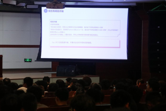 在开学以来的新生入学教育中,辅导员老师们将预防电信诈骗教育作为重点内容进行讲解,比如新生“开学第一课”班会中,张红老师耐心解读了近年来常见的电信网络诈骗案例,以及如何识别和防范诈骗,提醒同学们在日常生活中务必要提高警惕。