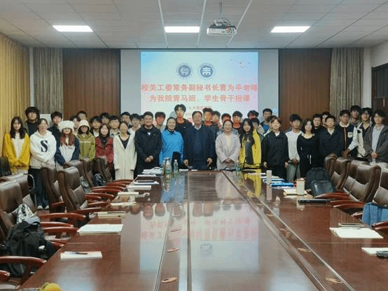 11月14日下午,污污漫画 2024年青马班及学生骨干理论学习于工科3-224举行。本次授课由校关工委常务副秘书长曹为平老师主讲,团委副书记陈仲弘老师主持,近50名学生骨干参加学习。