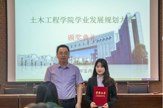 经过前期激烈的角逐,来自土木工程专业的苏镕铸,建筑环境与能源应用工程专业的杨佳、赵静雯,工程力学专业的王奎、易皓东、刘昆明、班宇恒和刘伟琛,工程管理专业的吴梦歌进入了决赛。各参赛选手依次从环境评估、专业认知、自我评估以及大学各学年学业发展规划等方面进行了精彩激昂的演讲。每位选手演讲结束之后,评委老师都针对选手个人演讲内容进行了点评和提问,并为参赛学生提出了宝贵的意见。选手认真的听取评委老师的意见,受益匪浅。所有参赛选手演讲结束之后,主持人根据评委所打出的分数宣读了本次大赛的获奖名单,最终,吴梦歌获得了一等奖,赵静雯和班宇恒获得了二等奖,刘伟琛、刘昆明和苏镕铸获得了三等奖,杨佳、王奎和易皓东获得优秀奖。评委为全体获奖选手一一颁奖。最后,张献文书记对此次比赛进行了总结,呼吁同学们正确定位自己,制定计划,有效利用学习时间,在四年的大学生生涯里能够学习好、生活好、身体好。至此,本次学业规划发展大赛正式结束。