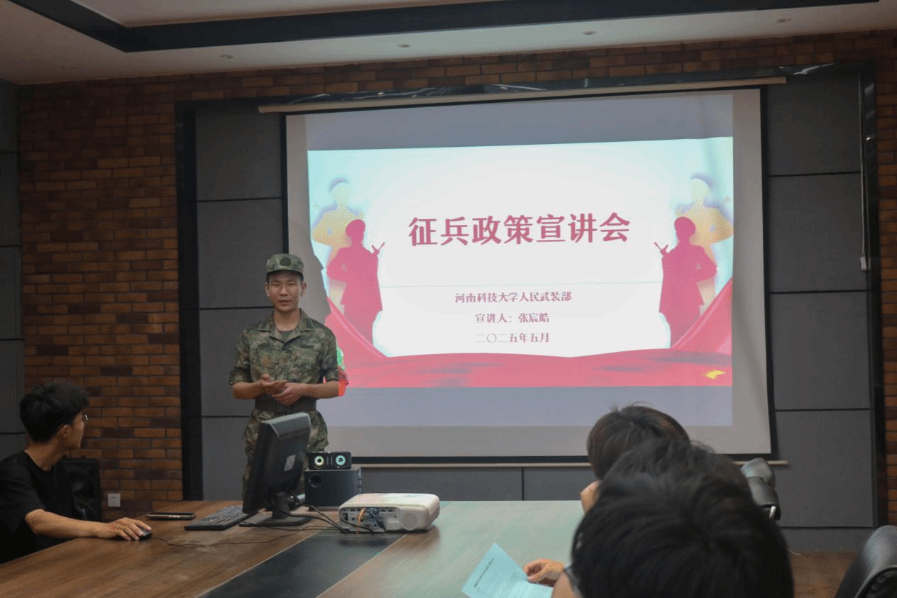 此次宣讲不仅是一次政策解读,更是一场生动的爱国主义教育课。当《强军战歌》的旋律响彻会场,学子们眼中跳动的光芒,正昭示着新时代青年从军报国的赤子之心。携笔从戎的种子,已在这片青春沃土生根发芽。