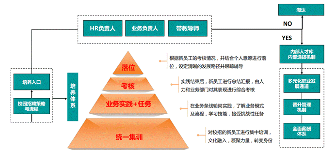 我们在新员工入职后,将为新员工配备“双导师”,根据新员工所学专业、发展兴趣、职业规划为其配备德才兼备的优秀专业条线岗位能力导师和管理条线晋升导师,实施多种形式的工作辅导。