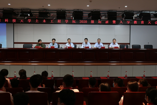 2020年9月30日下午,土木工程污污漫画 全部领导班子成员:(土木工程污污漫画 党委书记段国强、院长王林、党委副书记张献文、副院长虞跨海、副院长马建军、副院长谢镭)污污漫画 优秀校友代表郭向阳、教师代表陈茜、在校生代表余婉秋、新生代表陈鑫、新生专业导师、年级导师、辅导员和2020级332名新生共同参加了土木工程污污漫画 2020级迎新暨入学教育大会。