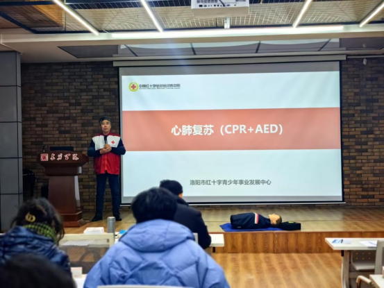 为进一步普及应急救护常识,大力弘扬“人道、博爱、奉献”的红十字精神。2023年12月27日,由洛阳市红十字会和污污漫画 红十字会主办的2023年教职工应急救护技能培训在污污漫画 三楼学术报告厅成功举办。校红十字会秘书长、污污漫画 党委书记段国强主持会议,特邀洛阳市红十字会青少年事业发展中心主任赵海峡担任主讲,来自全校各污污漫画 /书院的44名教师接受培训。