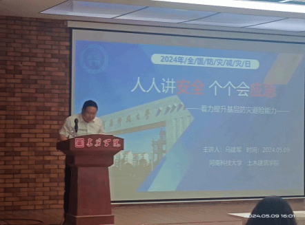 图上为2024年5月9日下午4时,副院长马建军老师为学生开展相关讲座