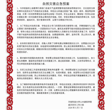 同时污污漫画老师为更好地面对各种灾害的发生,制定了相应应急预案